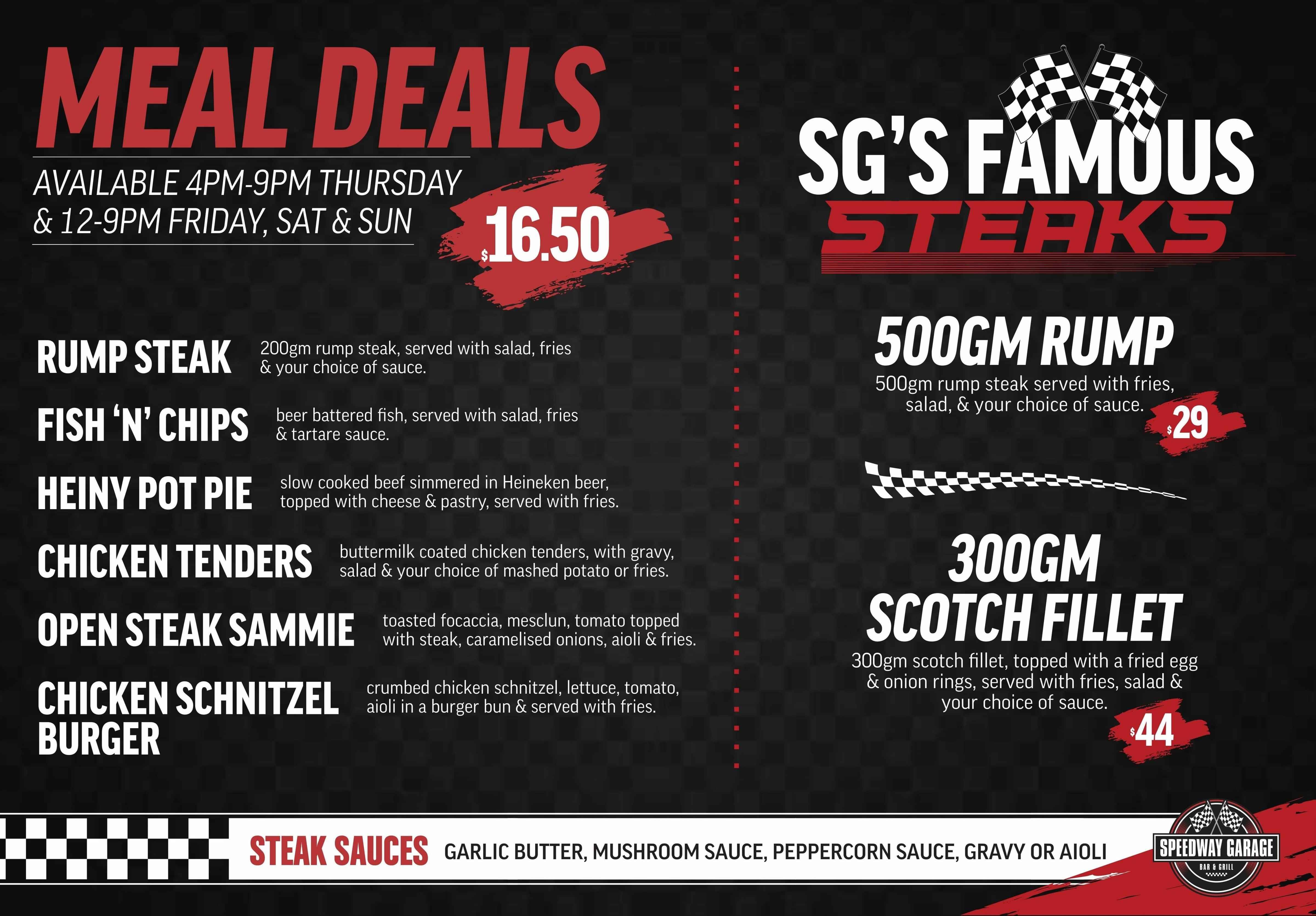 Great selection of Everyday meal specials to choose from starting from $16.50