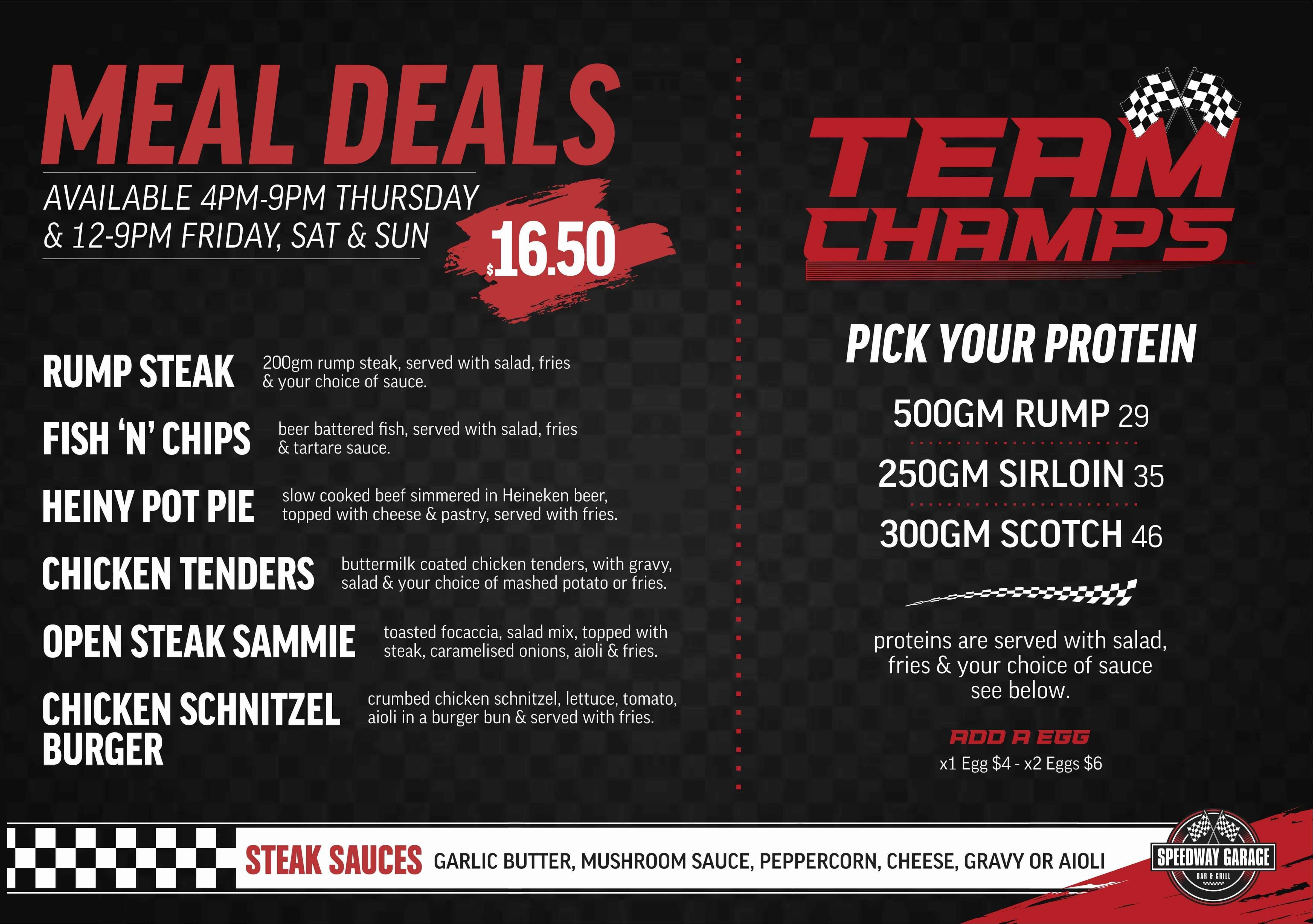 Straight-up track tucker and unbeatable everyday deals for lunch and dinner in Palmerston North & Whanganui.